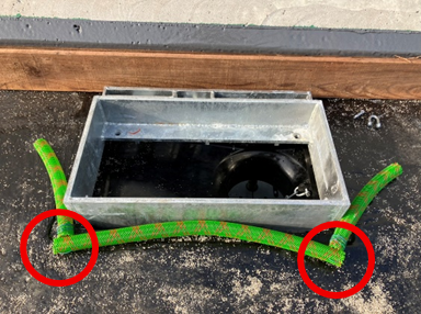 緑色のホース状のドレーン同士を、鉄線で繋いであります。(写真の赤丸の部分)