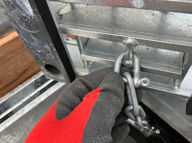 グレーチングの枠と桝のフタをチェーンで繋げています。