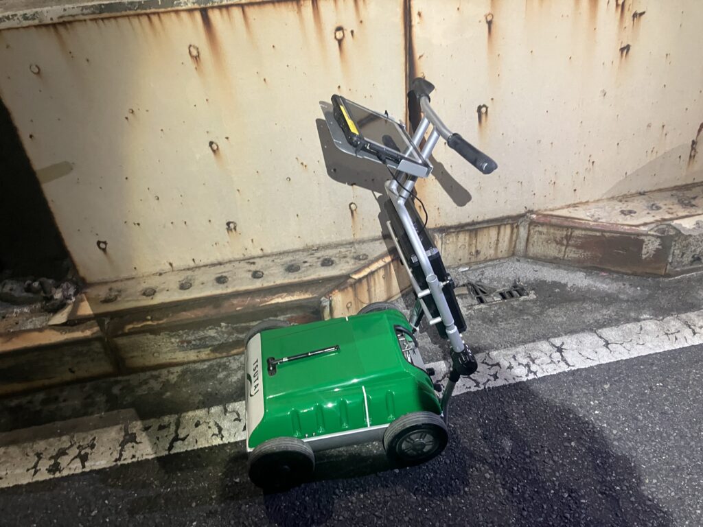 打音測定の際には、速度が速すぎても遅すぎても再測定になるため、一定のスピードを保ちながら慎重に作業を進めました。
